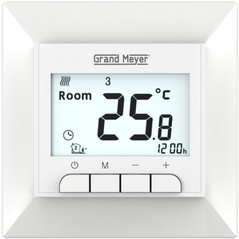 Программируемый терморегулятор для различных видов теплого пола (кабельного, инфракрасного), системы отопления дома. Терморегулятор оснащен 2 датчиками. Встроенный датчик воздуха и выносной датчик пола. Устанавливается в стандартную монтажную коробку. Имеет ж/к дисплей с подсветкой Режим работы 5/2, 6/1, 7/0. Цвета - Белый, Бежевый, Черный. Гарантия 36 мес.